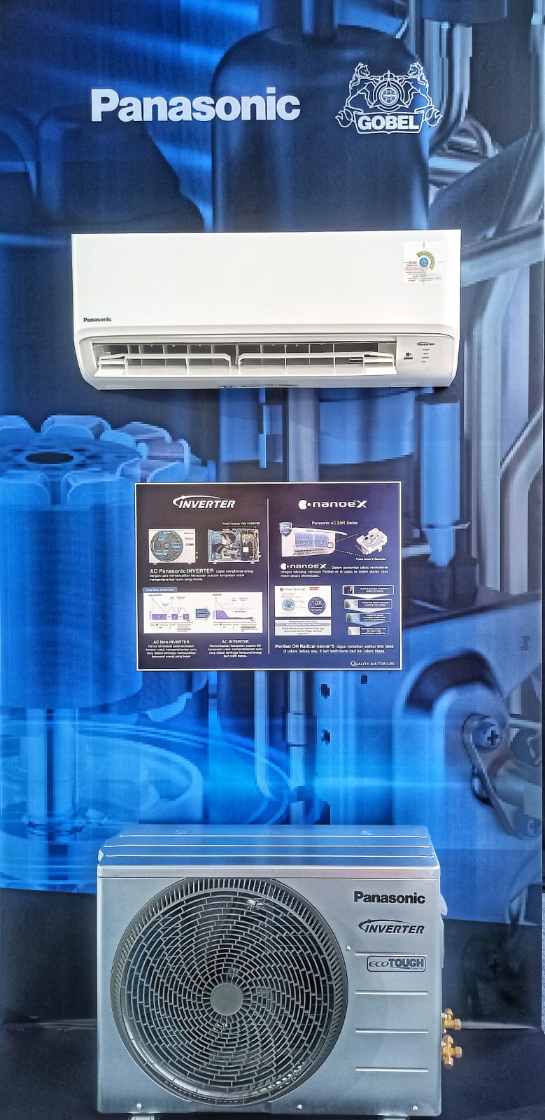 Unit Bisnis AC PT PMI yang berdiri sejak 47 tahun lalu (1974), saat ini merupakan satu-satunya pabrik AC di Indonesia dengan kemampuan memproduksi secara penuh (full manufacture) dari bahan baku hingga produk jadi, yang secara agresif terus meluncurkan produk-produk inovatif melalui slogan “Quality Air for Life”, bahwa AC bukan hanya penyejuk ruangan tetapi juga harus bisa memberikan udara yang nyaman dan sehat bagi penggunanya. Saat ini telah tersedia produk-produk AC Panasonic ramah lingkungan dan hemat energi berbasis refrigerant R32, serta dilengkapi teknologi “nanoeX” dan “nanoe-G” yang sangat baik untuk kesehatan.