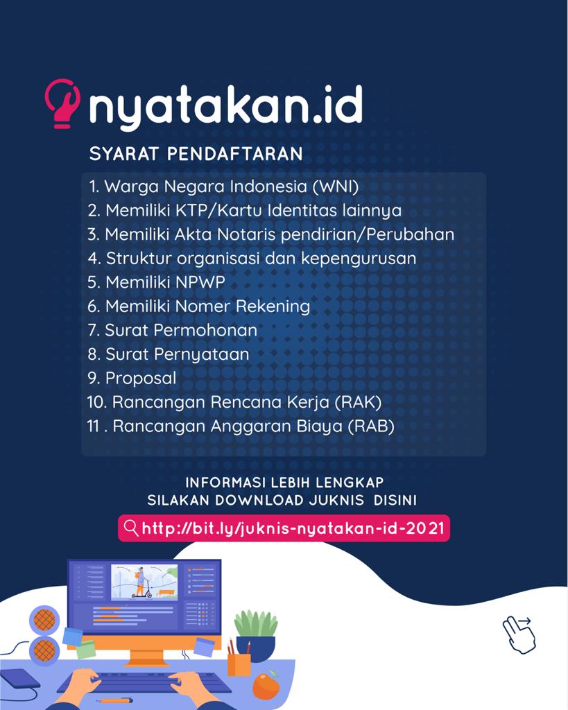 Untuk informasi lebih lanjut, calon peserta dapat mengunduh petunjuk teknis terkait tata cara pengajuan bantuan pemerintah Program Nyatakan.id pada tautan https://bit.ly/juknis-nyatakan-id-2021.