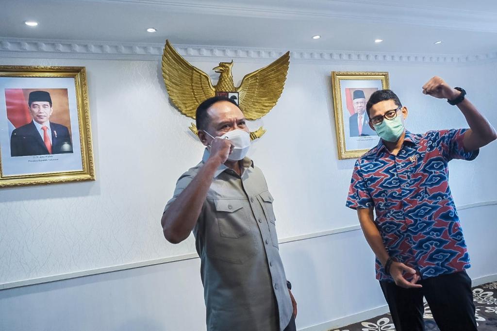 TRAVELOUNGE.CO I JAKARTA – Bang Sandi, ( Sandiaga Salahuddin Uno, Menteri Pariwisata dan Ekonomi Kreatif/Kepala Badan Pariwisata dan Ekonomi Kreatif, ) bertemu dengan Bang Zainudin ( Zainudin Amali, Menteri Pemuda dan Olahraga ) membahas rencana pengembangan wisata olahraga di Indonesia ke depan.