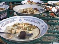 Tradisi memasak bubur sudah berjalan puluhan tahun, makanan ini merupakan bubur sop berbahan dasar beras. Campurannya ada kentang, wortel, daging, telur, irisan ayam, rempah-rempah, dan minyak samin.