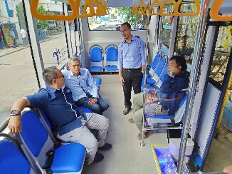 Secara teknis, bus ini menyediakan 17 kursi dengan kapasitas maksimal 25 orang. Bus ini juga didesain rendah agar pengunjung tidak mengalami kesulitan menaikinya, terutama bagi perempuan dan orangtua. Dengan pintu geser yang dapat terbuka lebar, kabin bus juga dilengkapi dengan penyejuk udara (ac). Terdapat 3 anak tangga yang memudahkan pengunjung menaiki bus ini.