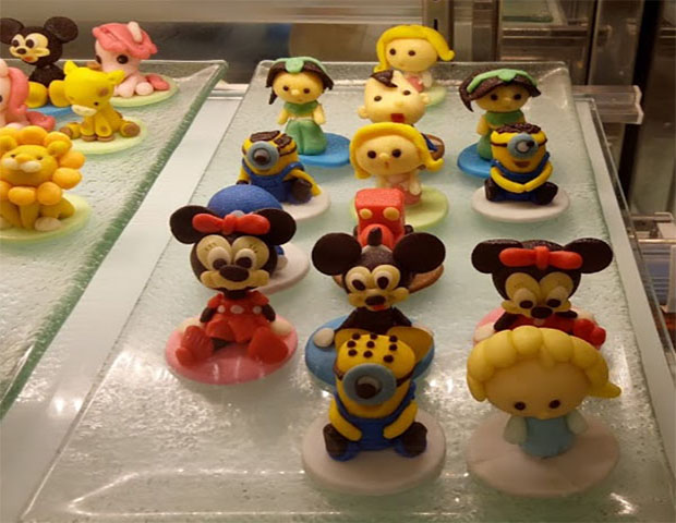 Disisi lain kita juga dapat melihat sajian kue-kue yang juga berbahan cokelat di etalase dan lemari kaca yang sangat cocok untuk kue ulang tahun dan tentu rasanya sangat menggiurkan. Apalagi ada yang berbentuk tokoh-tokoh kartun Disney yang sangat menarik buat anak-anak.