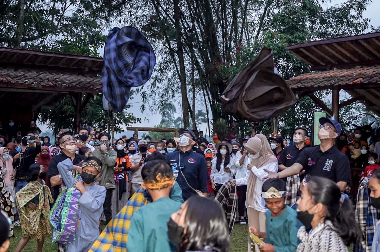 Menteri Pariwisata dan Ekonomi Kreatif/Kepala Badan Pariwisata dan Ekonomi Kreatif Sandiaga Salahuddin Uno saat melakukan visitasi 50 besar ADWI 2021, di Desa Wisata Saung Ciburial, Senin (18/10/2021) mengatakan,