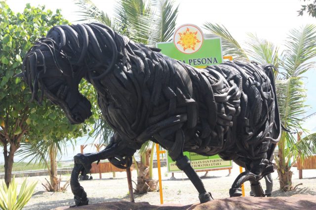 Konsep Pantai Batuhoda sangat kekinian. Pantai di pinggiran Danau Toba itu memiliki sejumlah spot yang Instagramable. Ada spot berkonsep rumah, spot love. Ada juga lokasi di ketinggian yang keren. Dan sebuah rumah pohon berbentuk rumah burung. Ikon pantai ini adalah sebuah patung kuda hitam. Patung ini terbuat dari material ban bekas. Menurut Ombang, patung ini dibuat oleh seniman lokal.
