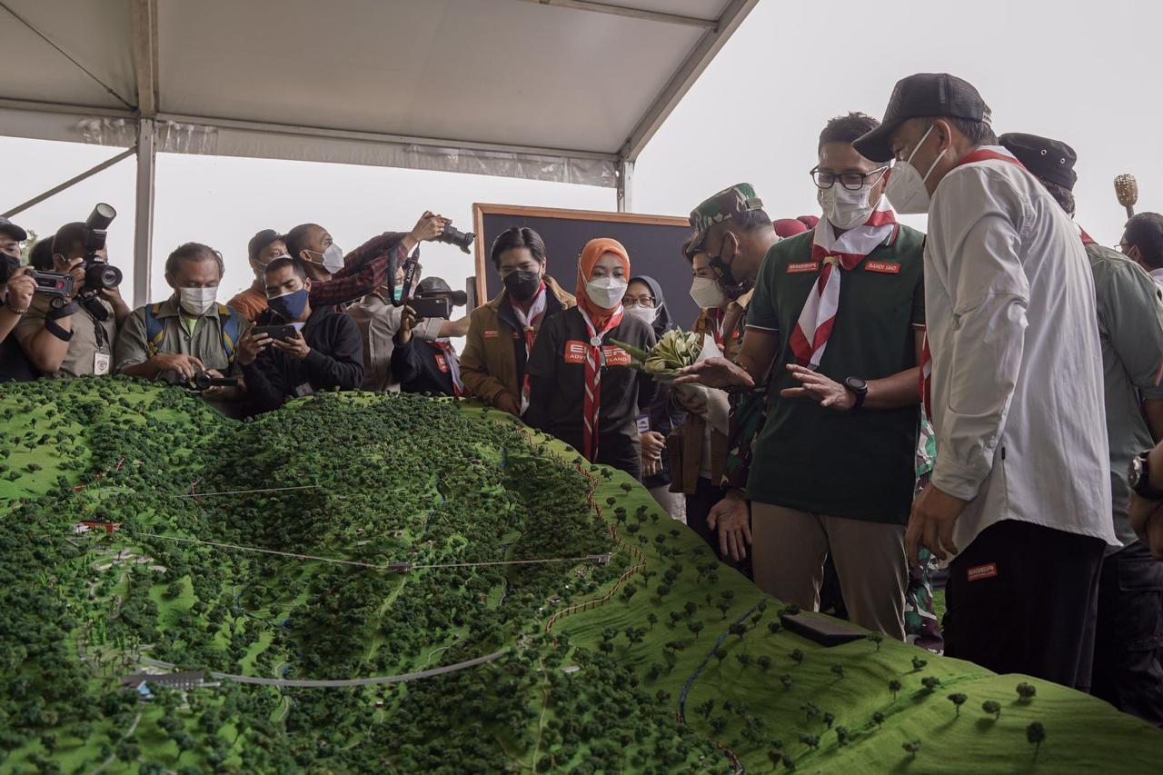 Saat melakukan peletakan Batu Pertama dan Penandatanganan Prasasti Pembangunan Ekowisata Eiger Adventure Land, Minggu (17/10/2021), Menteri Pariwisata dan Ekonomi Kreatif/Kepala Badan Pariwisata dan Ekonomi Kreatif Sandiaga Salahuddin Uno mengapresiasi pembangunan.