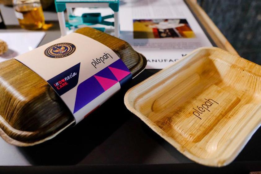 Untuk itu, salah satu solusi yang diberikan adalah dengan menciptakan kemasan makanan yang terbuat dari bahan alami, seperti yang terbuat dari pelepah pinang. Bahan dasar tersebut banyak ditemukan di perkebunan kelapa sawit dan perkebunan karet. Selain itu, produk kreatif ini juga membuka lapangan kerja yang luas bagi masyarakat setempat.