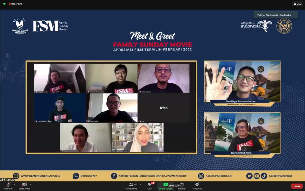 Meet and Greet Family Sunday Movie (FSM) merupakan salah satu rangkaian dari program Family Sunday Movie 2022 yang diinisiasi oleh Kemenparekraf/Baparekraf melalui Direktorat Ekonomi Kreatif dan Produk Digital. FSM sendiri adalah sebuah festival film pendek untuk memberikan apresiasi bagi para pelaku industri perfilman khususnya film indie di Indonesia, sekaligus untuk mempromosikan karya film pendek yang terpilih.