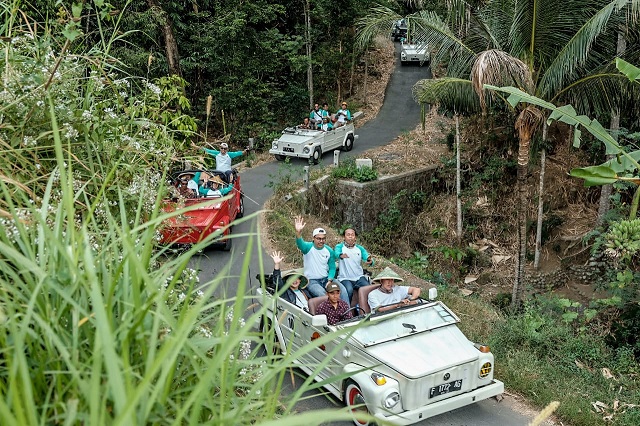 “Mobil – mobil antik itu dimodifikasi dengan cat warna-warna mencolok sehingga bisa membawa wisatawan keliling desa wisata sekitar Candi Borobudur,” katanya lagi.