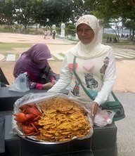 Buat sekedar mengganjal perut, ada juga ibu ibu yang menjajakan rempeyek udang, sate udang dan kepiting khas Batam. Sate udang dijual 3 batang Rp. 20.000. Rempeyek 3 biji Rp. 10.000. Sedangkan kepiting besar Rp. 60.000/ekor.