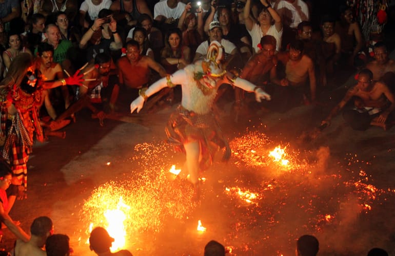 TRAVELOUNGE.CO I JAKARTA – Tari Kecak memiliki makna mendalam yang berhubungan dengan keindahan, nilai religius, dan pesan moral. Tari Kecak biasa disebut Tari Cak atau tari api. Tarian ini merupakan tarian pertunjukkan hiburan masal yang menggambarkan seni peran dan tidak diiringi oleh alat musik atau gamelan. Namun, hanya diiringi oleh paduan suara sekelompok penari laki-laki berjumlah sekitar 50 – 70 orang yang berbaris melingkar memakai kain penutup kotak-kotak berbentuk papan catur. Tarian ini sangat sakral. Lihat saja penarinya yang terbakar api, namun mengalami kekebalan dan tidak terbakar.