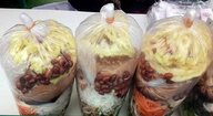 Oh, ya, ada dua asinan yang dijajakan, yakni asinan sayur dan buah. Asinan sayur berisi kol, timun, toge, wortel, lobak, sawi, tahu, kerupuk, dan sambal kacang. Sedangkan asinan buah dijejali jambu air, pepaya, nanas, mangga, kedongdong, salak dan bangkuang.