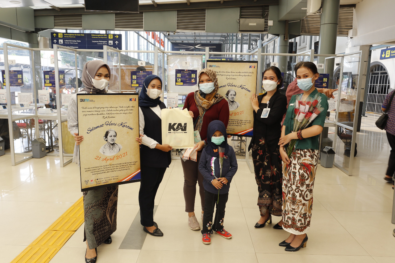 TRAVELOUNGE.CO I JAKARTA – Memperingati Hari Kartini setiap 21 April, bisa dengan bersgam cara. Sebagai bentuk apresiasi yang tinggi terhadap sosok RA Kartini yang inspiratif, PT KAI Daop 1 Jakarta memeriahkan acara Hari Kartini dengan menampilkan sejumlah media cetak berisikan kutipan penting RA Kartini yang dapat menginspirasi para calon pengguna di Stasiun agar terus semangat berjuang melawan pandemi melalui penerapan protokol kesehatan secara konsisten.