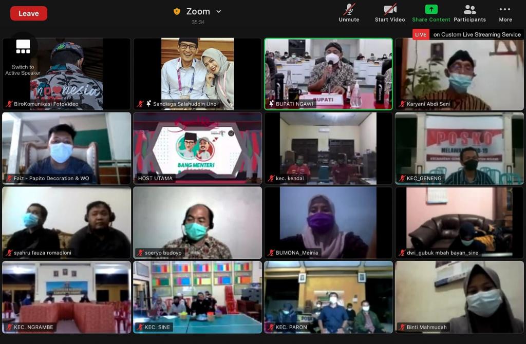 Ini terungkap dalam webinar “Mas Menteri Kangen Ngawi”, Senin (1/3/2021) malam. Dalam kesempatan itu Sandiaga mengatakan Ngawi memiliki banyak potensi produk kreatif yang berkearifan lokal di antaranya batik, teh, dan bonggol akar jati. Sehingga, hal ini cocok dipadukan dengan pengembangan ekowisata yang berkaitan erat dengan desa wisata.