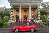 Beberapa staf berpakaian tradisional Jawa menyambut para pemilik Ferrari di gazebo belakang di Rumah kolonial 1880, bagian terbaru dari kompleks Kaliandra.