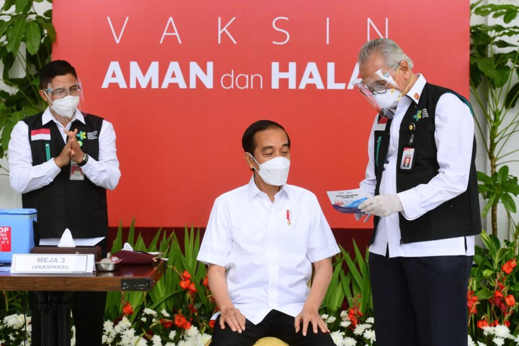 Presiden Joko Widodo menjadi penerima pertama vaksin tersebut dalam program vaksinasi COVID-19 setelah sebelumnya Badan Pengawas Obat dan Makanan (BPOM) telah memberikan persetujuan penggunaan darurat atau emergency use authorization (EUA) untuk vaksin COVID-19. Majelis Ulama Indonesia (MUI) juga telah mengeluarkan fatwa bahwa vaksin tersebut halal dan suci.