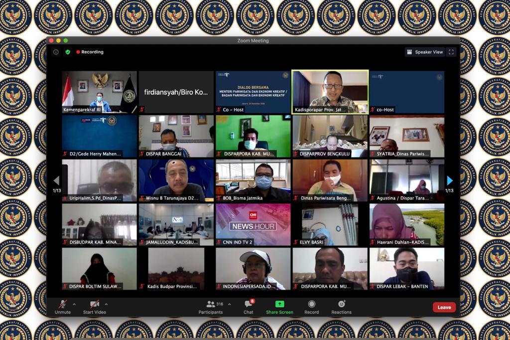 “Kita harus menyiapkan segala aspek untuk berbenah, tentunya yang harus kita dahulukan adalah aspek kesehatan, maka berbenah harus disiapkan secara detail, mulai dari kuliner, fashion, kriya atau kerajinan tangan, tari-tarian, dan lainnya,” papar Sandi mengawali diskusi pada Sabtu (26/12/2020).