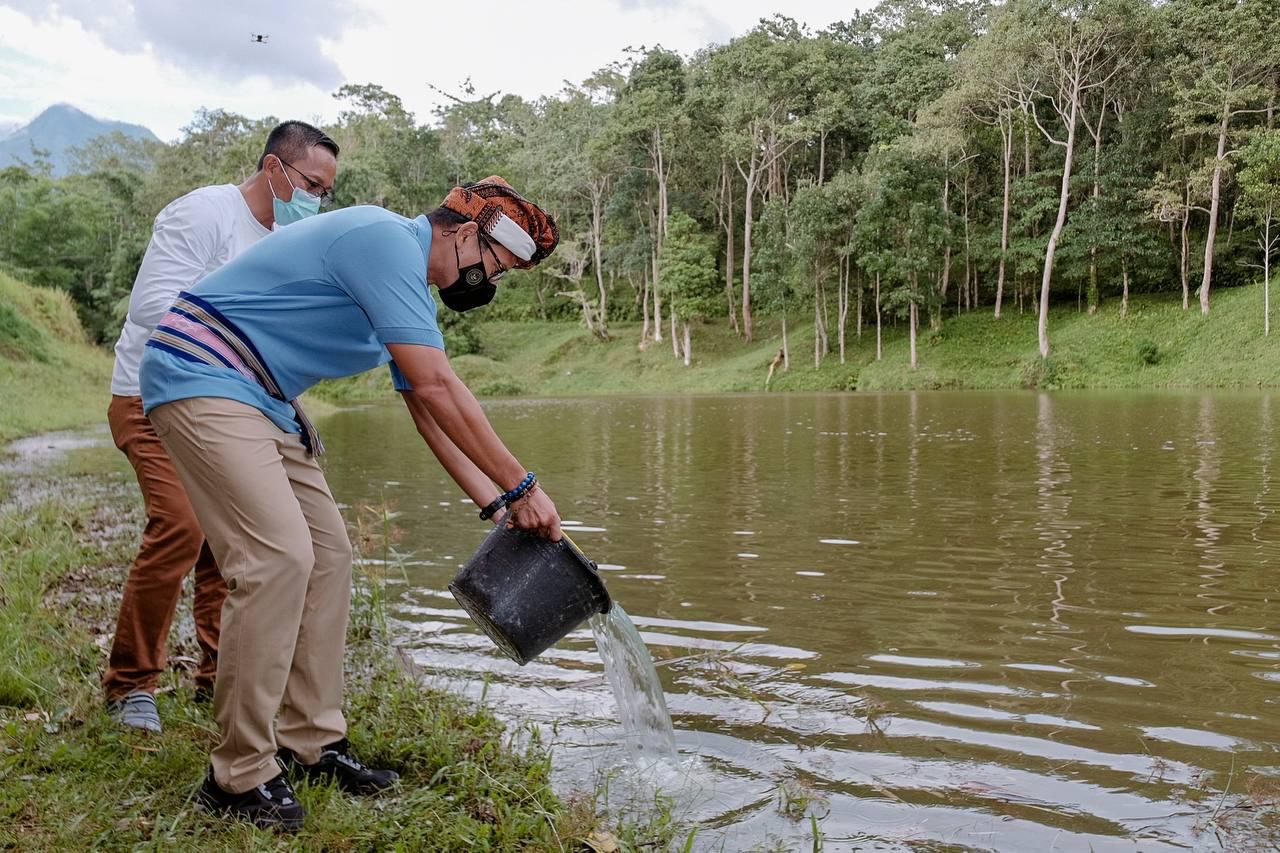 Dalam kesempatan itu, Menparekraf Sandiaga memberikan bibit ikan di sebuah bendungan wisata Ulem-ulem. Sebagai simbol kebangkitan ekonomi serta kesejahteraan masyarakat.