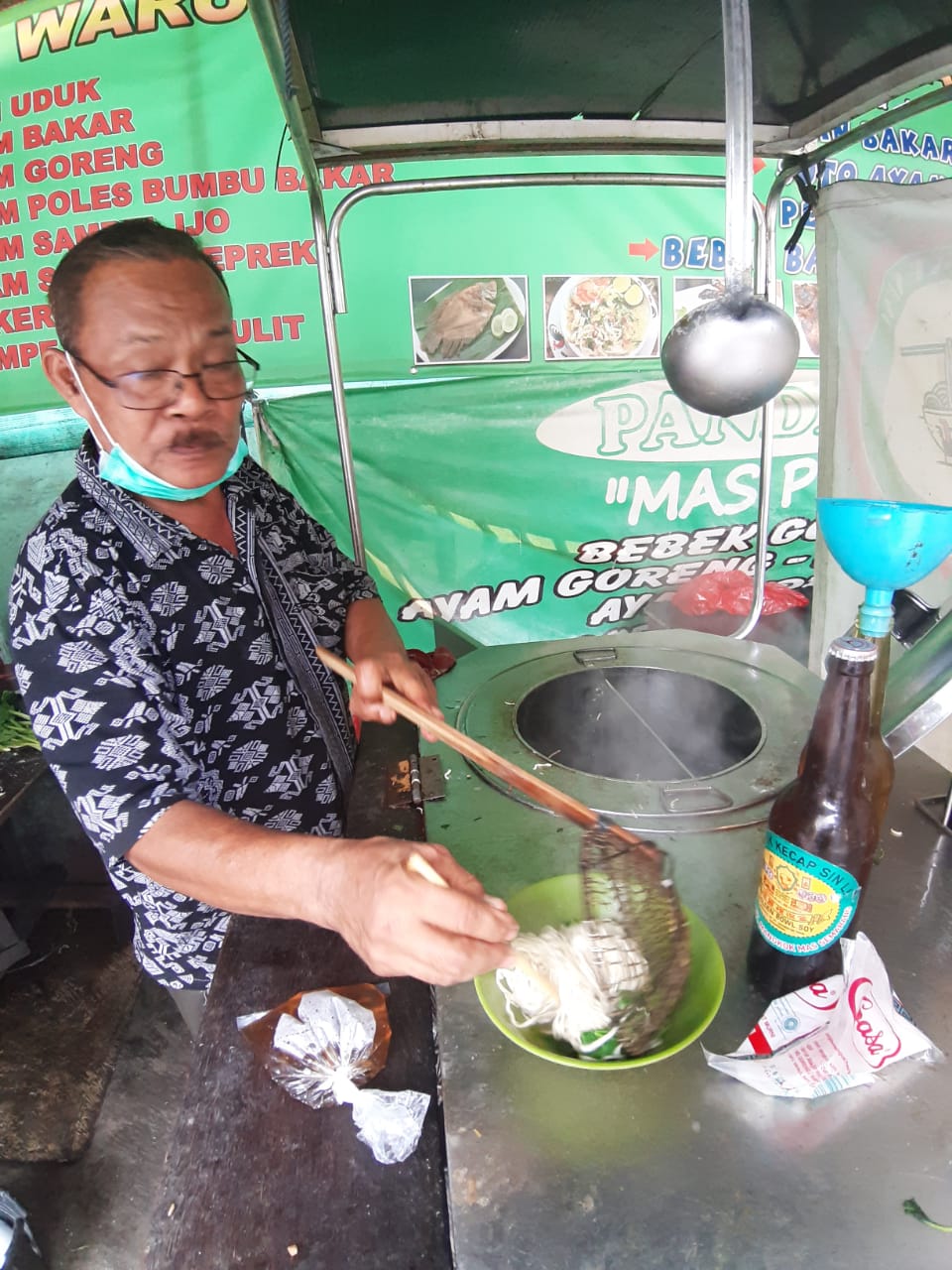 Kata Pakde Doyok itu karena mienya bukan beli dipasaran melainkan pesan khusus. Jadi tingkat kekenyalannya beda dengan yang lainnya. Racikan toping ayamnya pun dengan resep khusus, hingga rasanya wow abiiz.