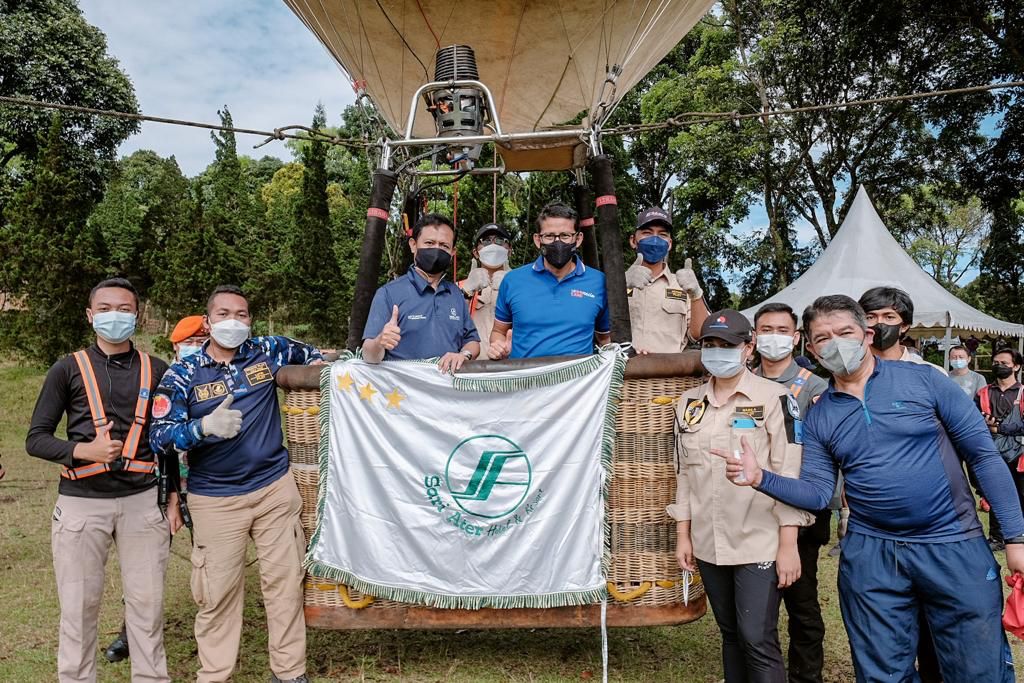 Menjajal terbang selama 15 menit dengan balon udara di kawasan Sari Ater, Subang Jawa Barat, Minggu (6/3/2022), Menparekraf mengatakan, keberadaan atraksi ini, akan menjadi salah satu daya tarik unggulan untuk menarik wisatawan datang ke Subang.