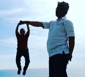“Om, mau saya fotokan gak? Mari saya fotokan. Mau dengan gaya memegang dan mendorong bukit atau lompat? Semuanya bisa saya fotoin dengan bagus. Pokoknya keren deh,” ujar Sulaiman