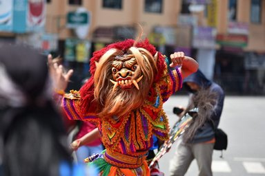 Pertunjukan pun berlanjut dengan atraksi kesenian Topeng Ireng Putra Tidar, Malang. Para penarinya menggunakan kostum yang mencolok mata. Merah, biru, hitam, kuning sangat mendominasi. Mereka menyuguhkan tari yang sangat atraktif.