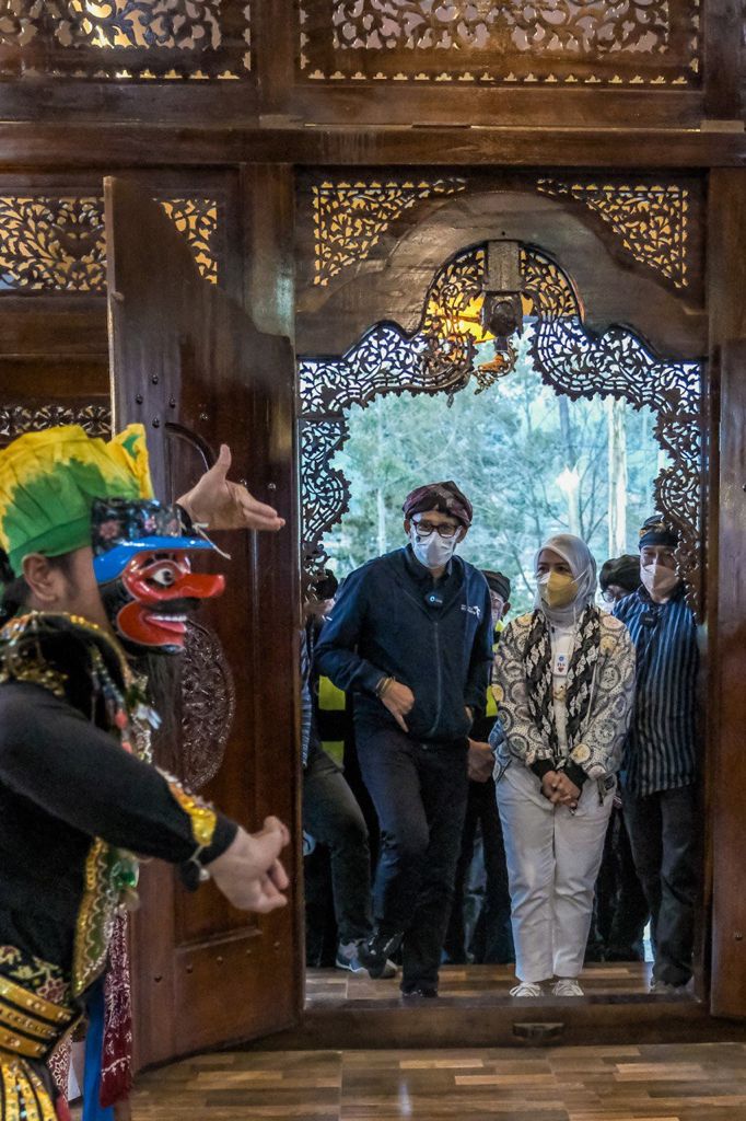 Menparekraf Sandiaga Uno dalam kesempatan tersebut juga sempat berbincang dengan Mbah Wuljono, salah seorang pelaku seni Topeng Lengger di Desa Wisata Dieng Kulon. Mbah Wuljono yang telah mendapatkan undangan tampil dalam festival kebudayaan di Thailand untuk memamerkan hasil kreasinya mendapatkan kesulitan karena topeng dan pakaian tari yang dimilikinya sudah mulai lusuh dan juga ada yang rusak.