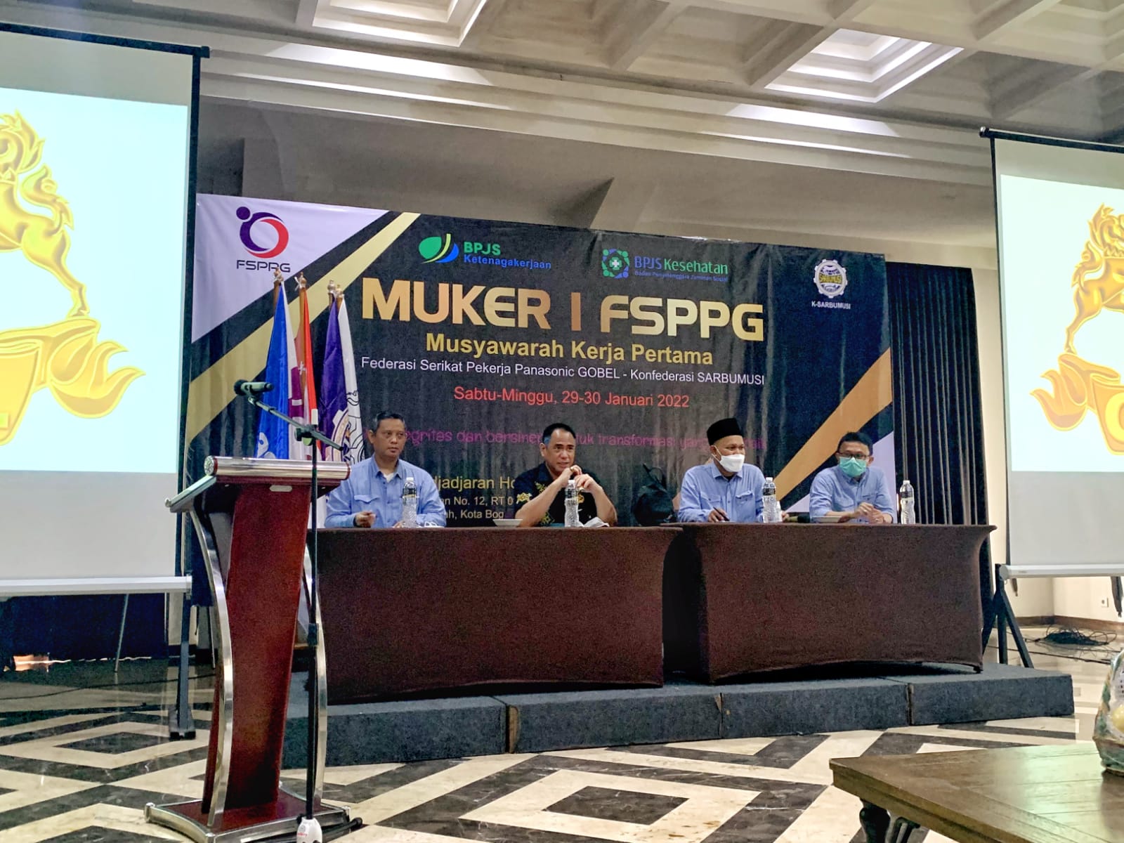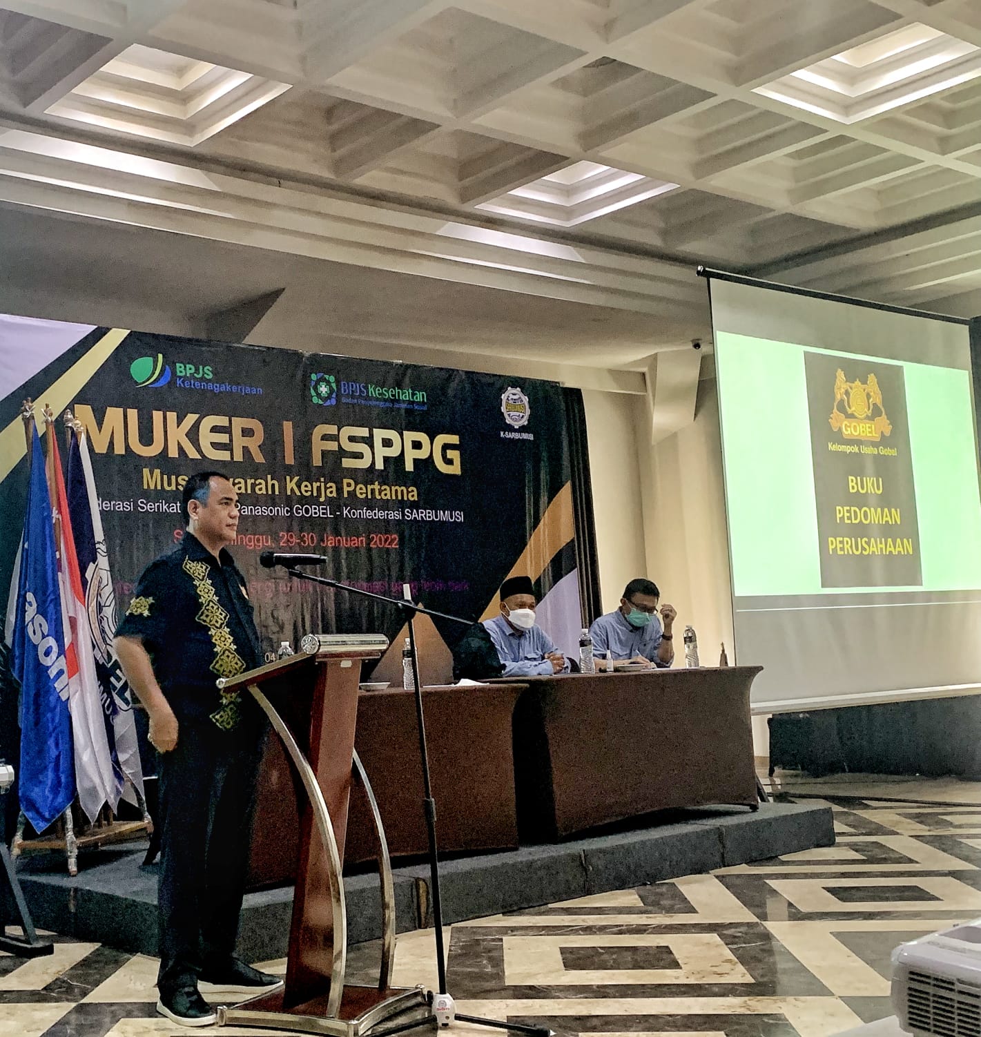 TRAVELOUNGE | BOGOR – Untuk meningkatkan motivasi karyawan menghadapi persaingan, meningkatkan pelayanan masyarakat, serta sustainable business dalam industri elektronika nasional, Federasi Serikat Pekerja Panasonic GOBEL (FSPPG) menggelar seminar pada 29 Januari 2022. Tema “Peningkatan Pemahaman Philosophy Pendiri Perusahaan Alm. Bapak Drs. H. Thayeb Mohammad Gobel “Pohon Pisang” menjadi agenda utama dari acara Musyarah Kerja (MUKER) FSPPG ke-1 yang dilaksanakan di Royal Padjadjaran Hotel Bogor.