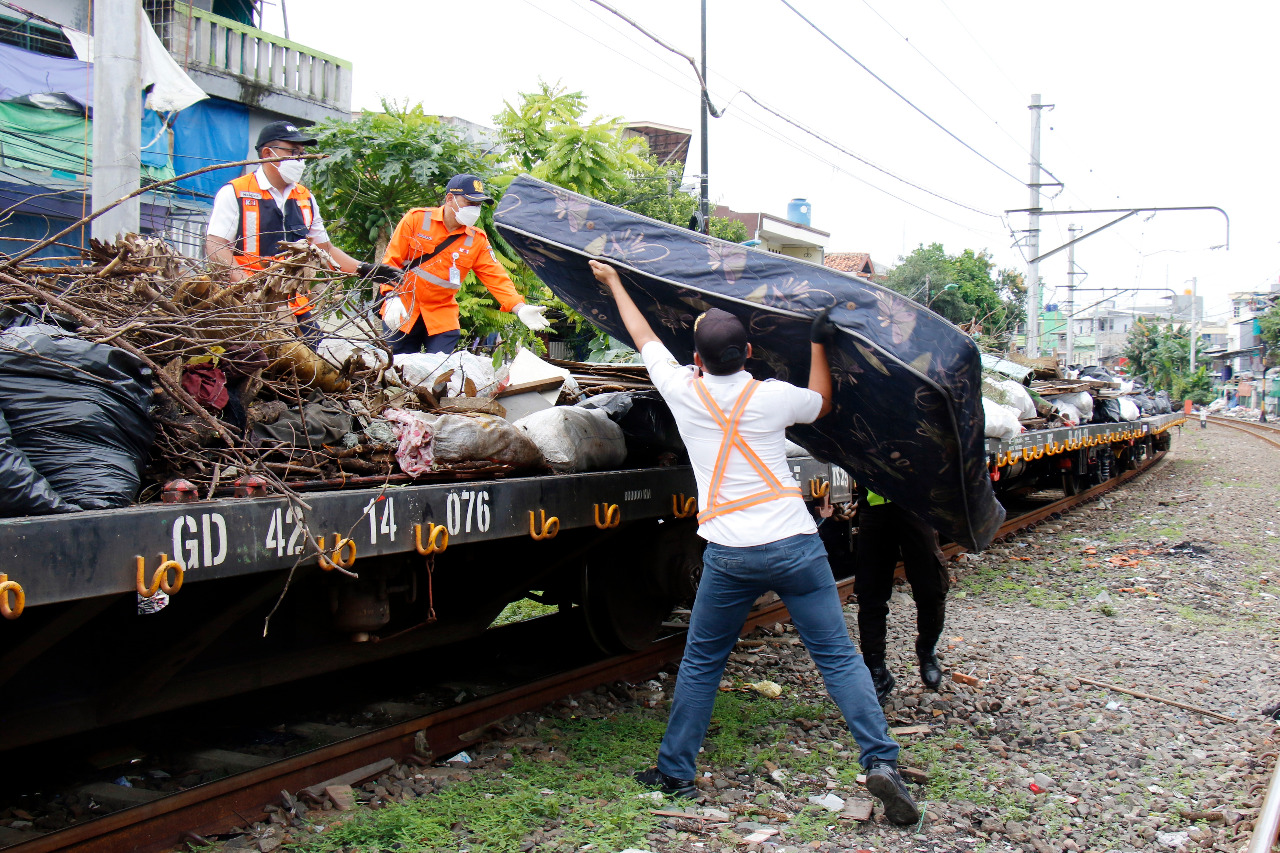 Daop 1 Jakarta juga menggunakan Kereta Luar Biasa (KLB) dengan rangkaian 20 gerbong datar untuk mengangkut puing-puing serta sampah yang ada di lokasi untuk dibawa ke tempat pembuangan.